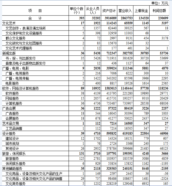 文化创意产业主要指标(2012年)