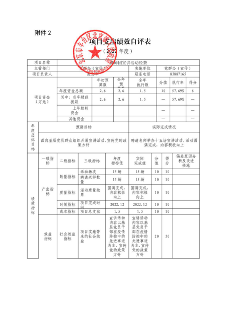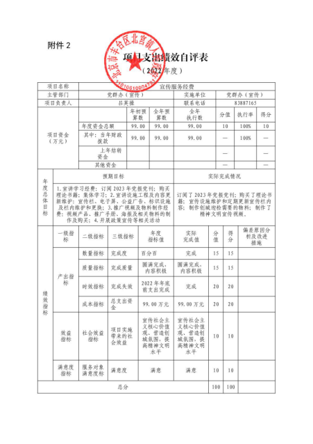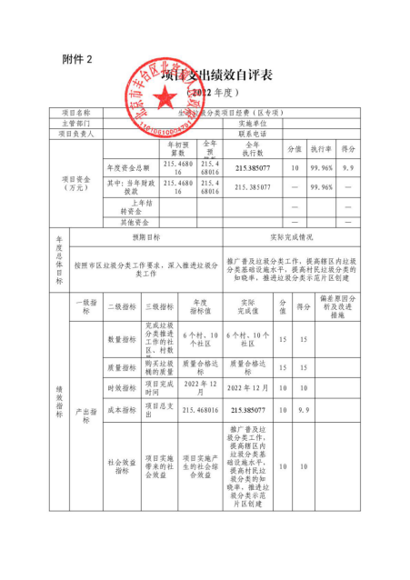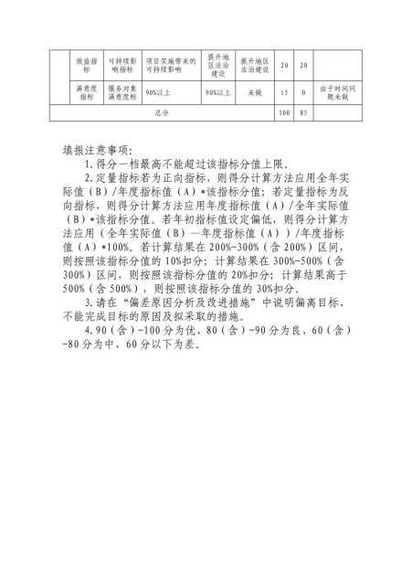 通过绩效自评,所有项目都实现了成本控制,绩效管理取得了一定成果。