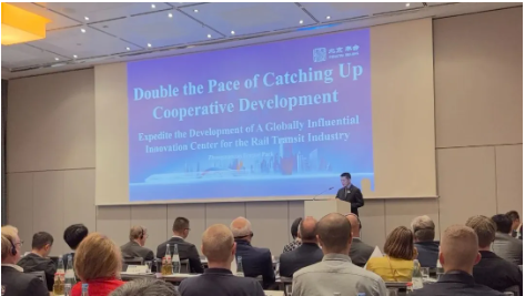 在致辞环节,中关村科技园区丰台园管理委员会副主任刘井权与柏林经济促进局马格达莱纳女士分别介绍了丰台区和柏林勃兰登堡地区的轨道交通产业最新发展情况,共同表达了对未来合作的展望。中国驻德国大使馆科技处公使衔参赞陈霖豪从中德科技合作的视角阐述了两国在轨道交通领域的合作前景。