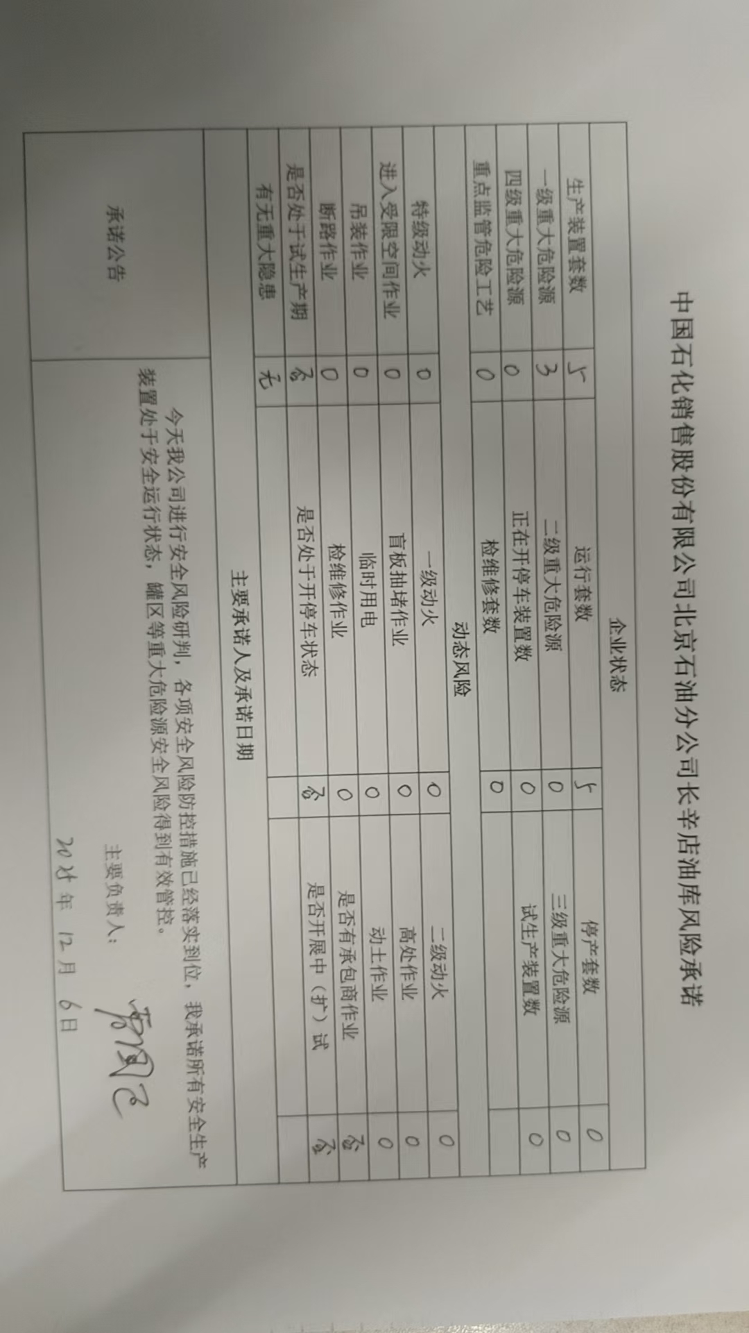 中国石化销售有限公司北京长辛店石油库安全承诺公告牌1206