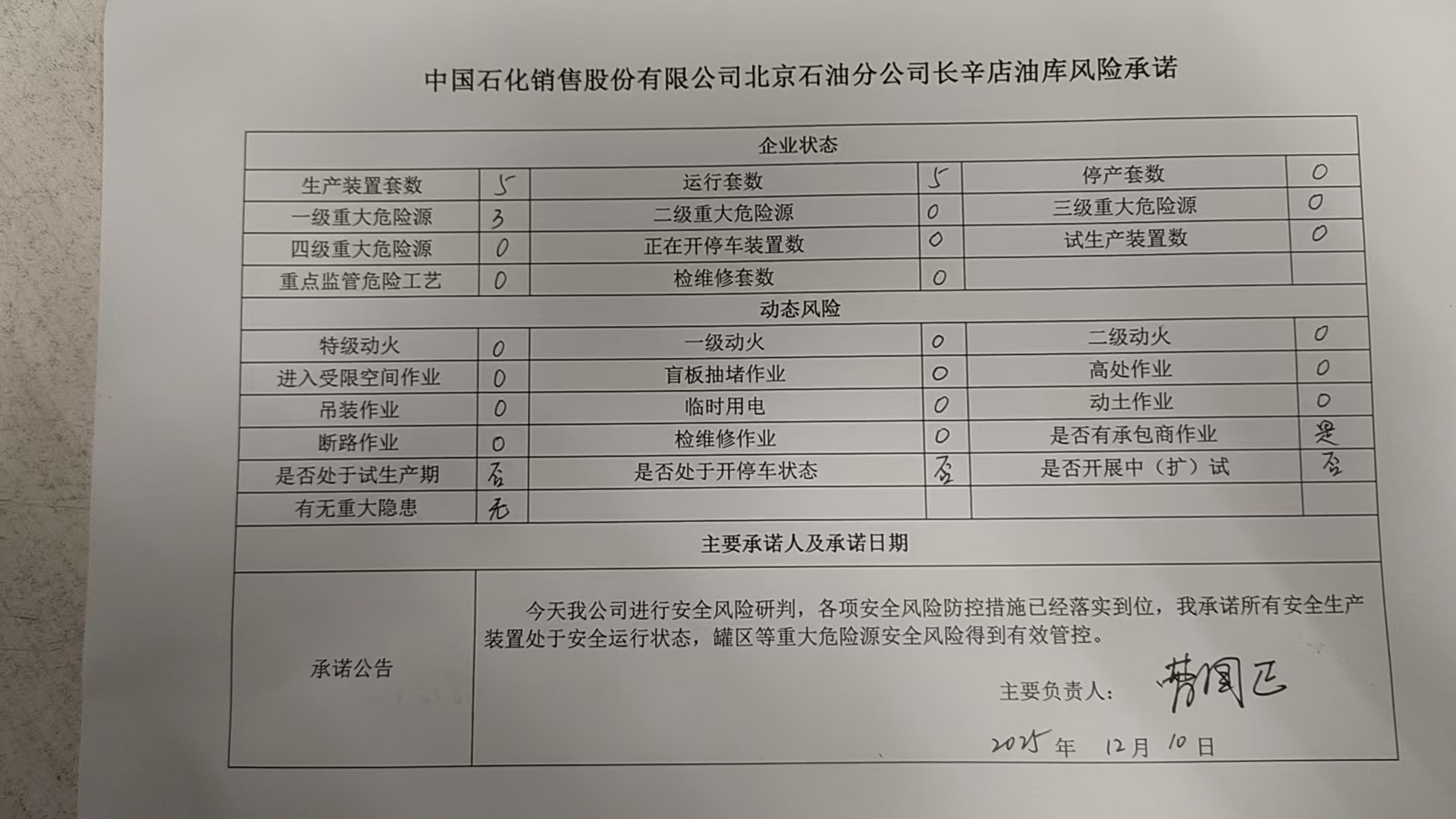 中国石化销售有限公司北京长辛店石油库安全承诺公告牌1210