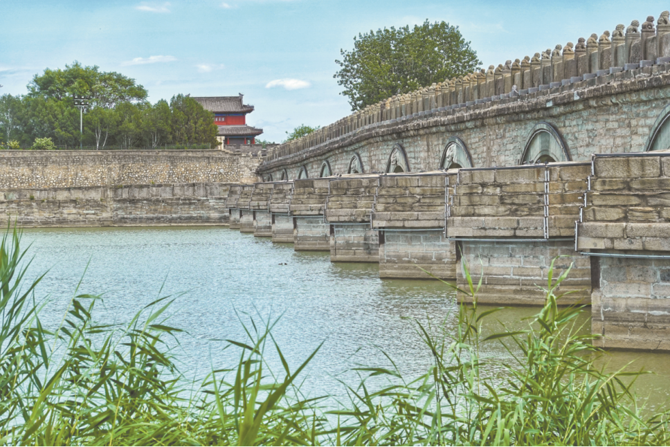 卢沟桥位于北京市丰台区,始建于金大定二十九年(1189年),是北京现存最古老的联拱石桥,因横跨卢沟河(即永定河)而得名。桥长266.5米,宽9.3米,桥上现存雕刻精美、形态各异的大小石狮共计501只。1937年7月7日,日本侵略者蓄意制造七七事变,炮轰宛平城,攻击卢沟桥,当地中国驻军第29军奋起抵抗,全民族抗战由此爆发。