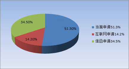 全区申请总数为1455件。其中,当面申请746件,占总数的51.3%;通过互联网申请207件,占总数的14.2%;以信函形式申请502件,占总数的34.5%。