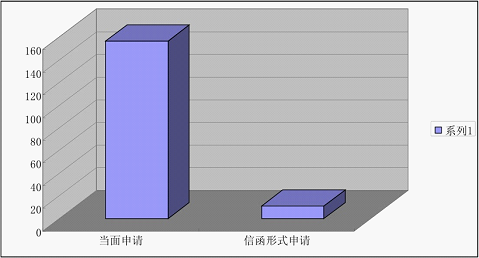 全区申请总数为168件。其中,当面申请157件,占总数的93.45%;以信函形式申请11件,占总数的6.55%。