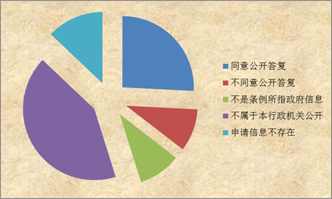 (三)申请答复数28件。其中:同意公开答复数8件,占总数的28.57%;不同意公开答复数3件,占总数的10.71%;不是条例所指政府信息3件,占总数的10.71%;不属于本行政机关公开数13件,占总数的46.43%;申请信息不存在数4件,占总数的14.29%。