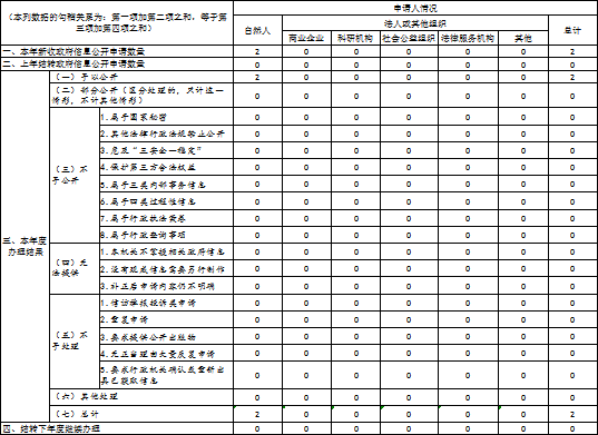 全共年共收到2件依申请公开,其中传真申请1件,电子邮件申请1件,均按相关要求和规定时限答复处理。