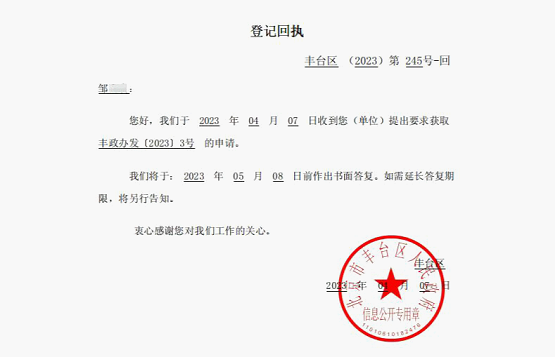 近日,丰台区在全市率先启用信息公开政务云章,打通了信息公开全程网办通道。随着电子印章的正式启用,丰台区信息公开电子答复全面上线。