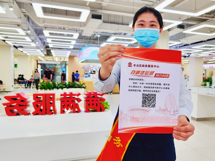 据悉,区政务服务中心自2022年10月起面向办事企业群众开展公众参与政务服务“满意度”调查,主动“倾听”企业群众的意见和建议,改进服务方式、扩宽服务范围、强化服务效能,精准优化丰台营商环境,擦亮丰台政务服务品牌。