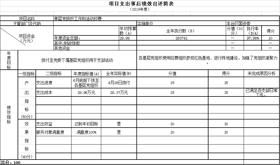 “组织事务”(款)2019年度决算30.57万元,比2019年年初预算增加0.59元,增长1.98%。主要原因:基层党组织积极组织有意义的学习和活动。