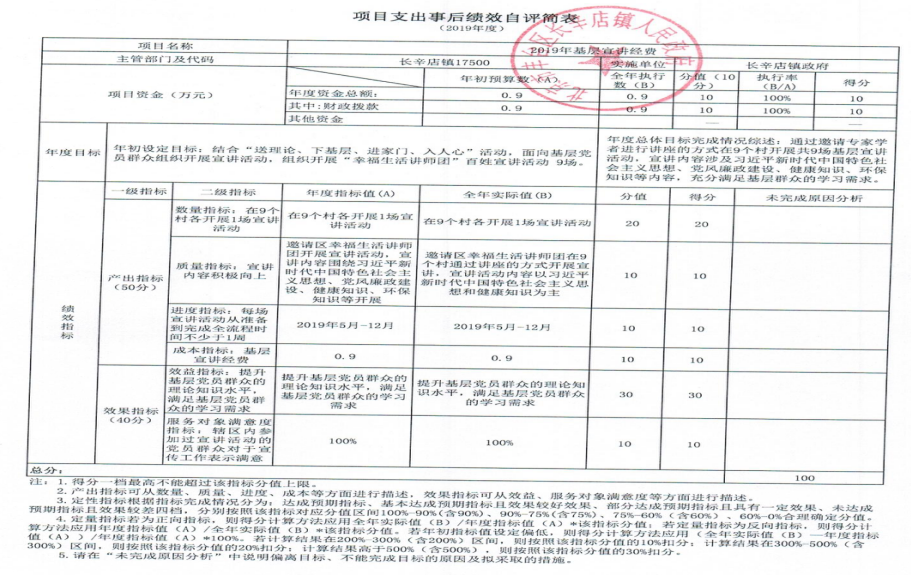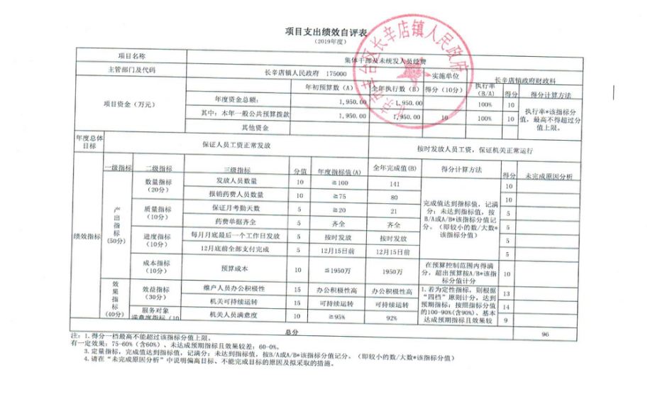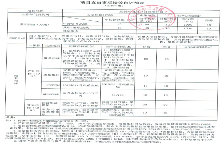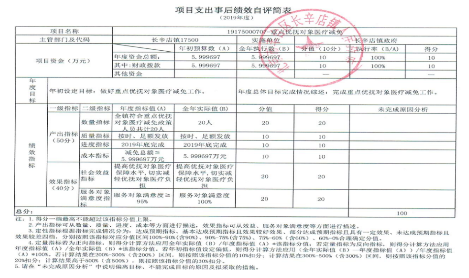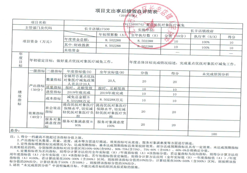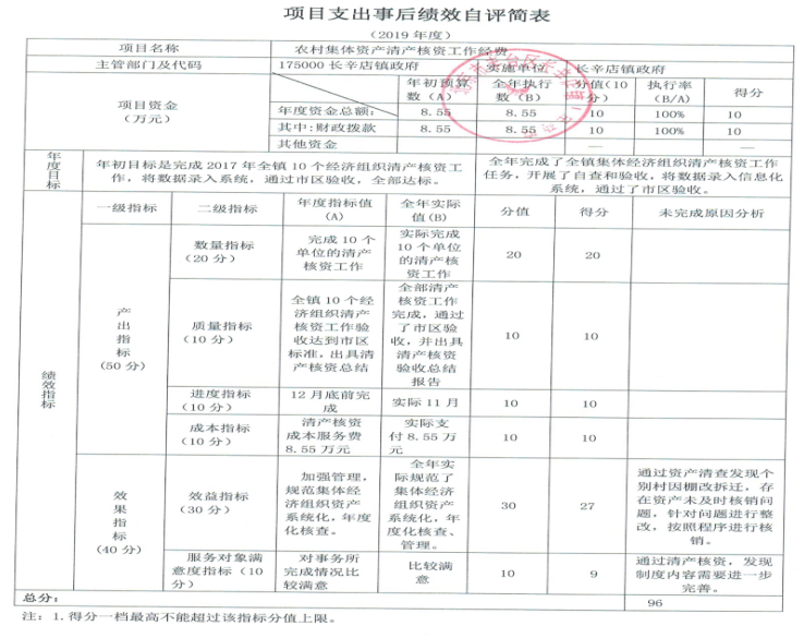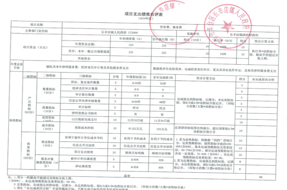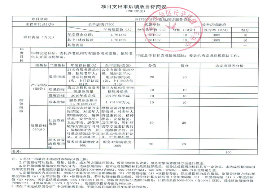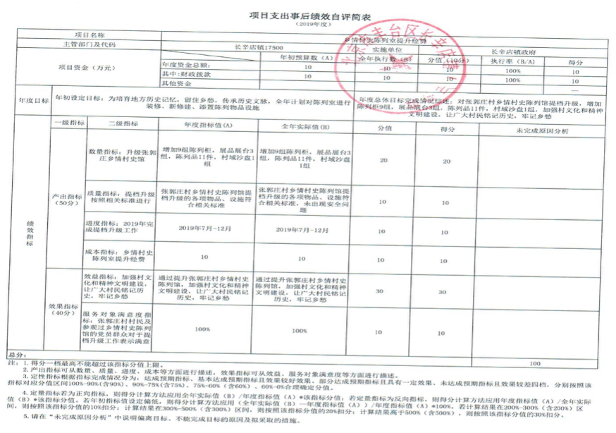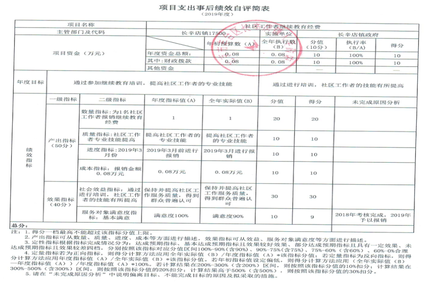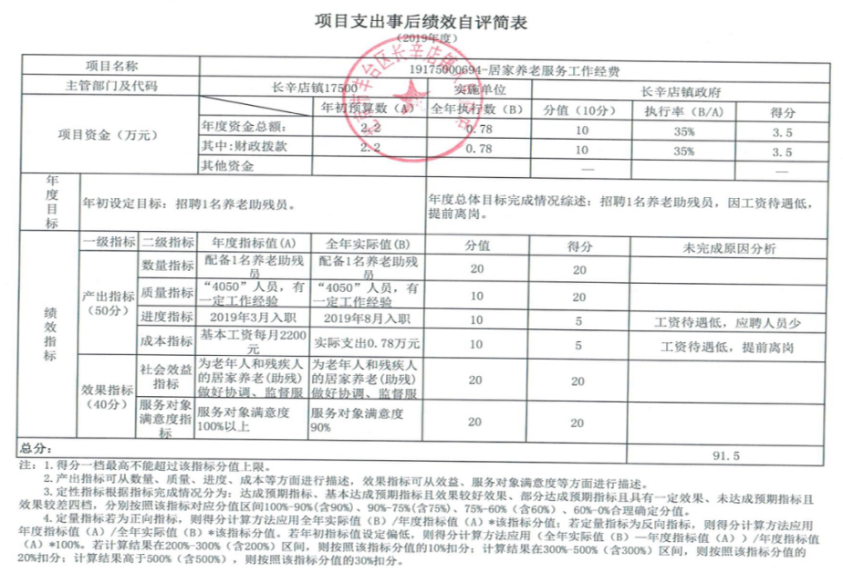 北京市丰台区长辛店镇人民政府对2019年度部门项目支出实施绩效评价,共计评价34个项目,1个普通评价流程,33个简易评价流程,占部门项目总数的30.63%,涉及金额6603.50万元。普通评价结果为一般,在项目的决策、绩效管理和合同管理制度方面仍然存在一些问题,在以后的项目实施过程中应加以改善。