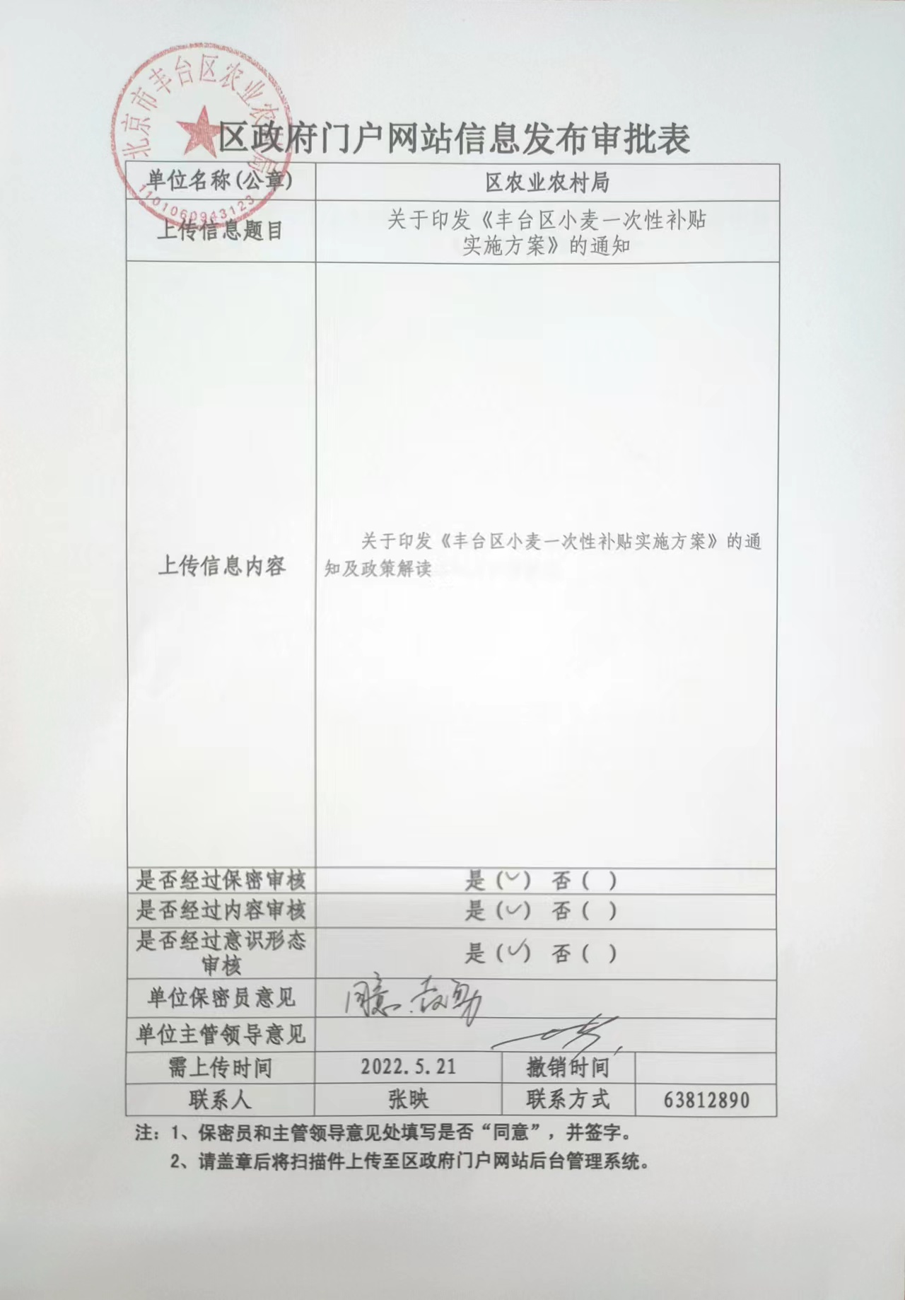 丰政农发〔2022〕7号-关于印发《丰台区小麦一次性补贴实施方案》的通知