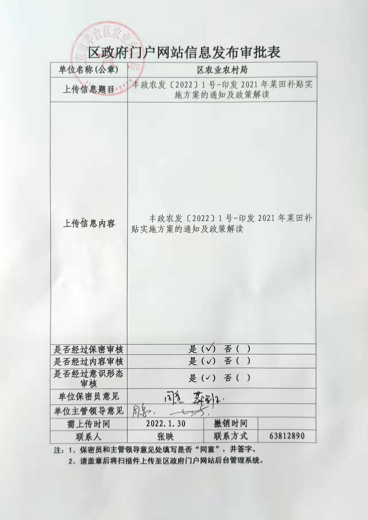 丰政农发〔2022〕1号-印发2021年菜田补贴实施方案的通知