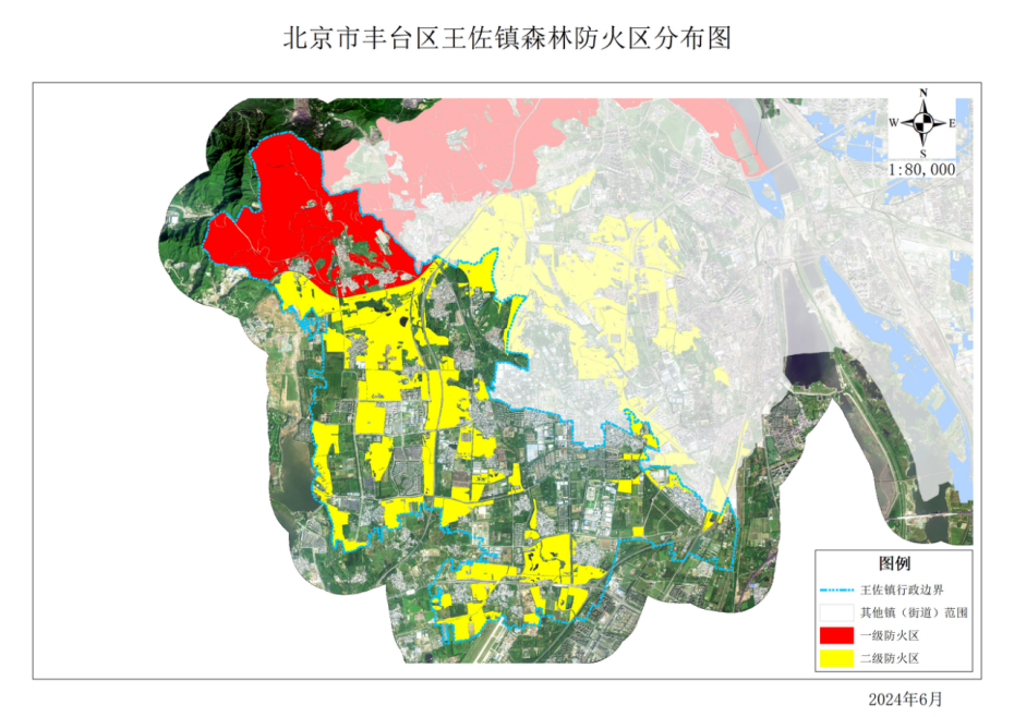 按照北京市森林防火指挥部印发《关于划分森林防火区工作的通知》要求,以《2020年森林资源“一张图”数据》、《2022年国土土地变更调查林地部分》、《丰台区2024年政策林数据》为基础,参考2023年最新卫星影像、丰台区园林绿化专项规划、2019-2023年征占地地块、丰台区果园苗圃台账、平原造林等数据对全区林地及其林缘外侧一定范围内现状地块进行梳理分类,并沟通各镇(街道)负责人意见,细化防火区范围,根据实际情况及防火需求,划分森林防火的主要风险区域。