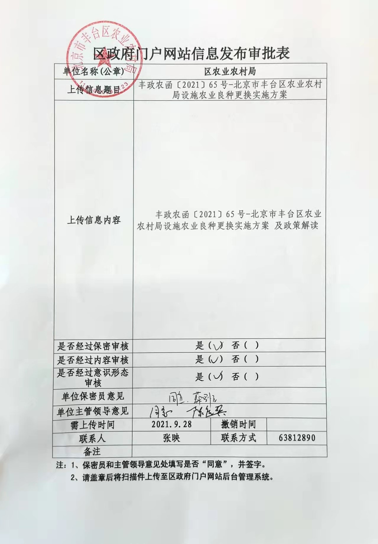 区种籽管理站对各街镇申报材料进行初审并汇总,填报《2021年设施农业良种更换(区级)汇总表》(附件4),区农业农村局进行复核。