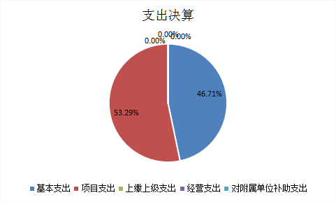 2024年度本年支出合计4641.24万元,比上年减少66.65万元,下降1.42%,其中:基本支出2168.00万元,占支出合计的46.71%;项目支出2473.24万元,占支出合计的53.29%;上缴上级支出0万元,占支出合计的0%;经营支出0万元,占支出合计的0%;对附属单位补助支出0万元,占支出合计的0%。