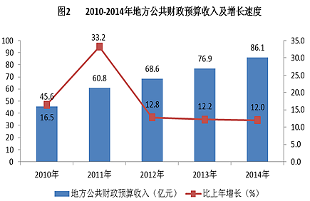 财政:全区完成地方公共财政预算收入86.1亿元,比上年增长12%。其中,增值税12.3亿元,增长17.5%;营业税32.6亿元,增长13.3%;企业所得税12.3亿元,增长19.3%;城市维护建设税7.6亿元,增长14.2%。地方公共财政预算支出152.9亿元,比上年增长1.5%。其中,用于节能环保、社会保障和就业、教育、医疗卫生、科学技术的支出分别增长122.6%、18.9%、13.8%、13.8%和7.3%。