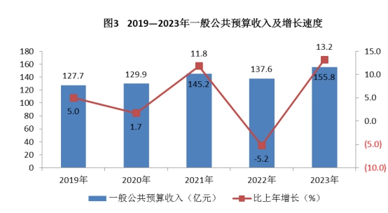 财政收支:全年完成一般公共预算收入155.8亿元,比上年增长13.2%。其中,增值税43.7亿元,增长44.4%;房产税23.4亿元,增长13.7%;城市维护建设税8.5亿元,增长6.5%;企业所得税19.3亿元,下降11.1%。全区一般公共预算支出289.2亿元,比上年增长3.7%。其中,用于社会保障和就业、教育、卫生健康的支出分别为77.6亿元、57.6亿元和22.8亿元,合计占一般公共预算支出的54.7%。