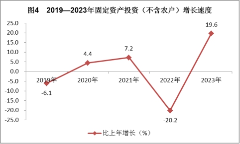 固定资产投资:全年固定资产投资(不含农户)比上年增长19.6%。分产业看,第二产业投资增长4.4%;第三产业投资增长20%。分领域看,建安投资增长11.5%;民间投资增长8.1%;基础设施投资下降1.8%。