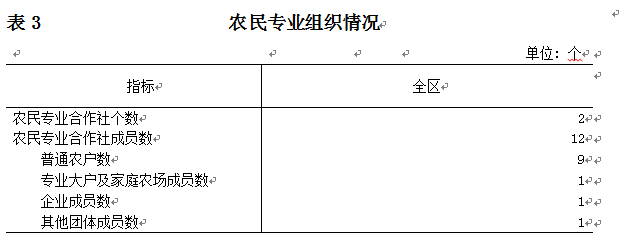 2016年末,全区共有农民专业合作社2个,农民专业合作社成员数共有12个,其中以普通农户为主,占75%。
