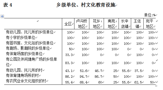 丰台区第三次全国农业普查对全区6个乡级单位和65个村级单位的基础设施建设和基本社会服务进行了调查。现将主要结果公布如下: