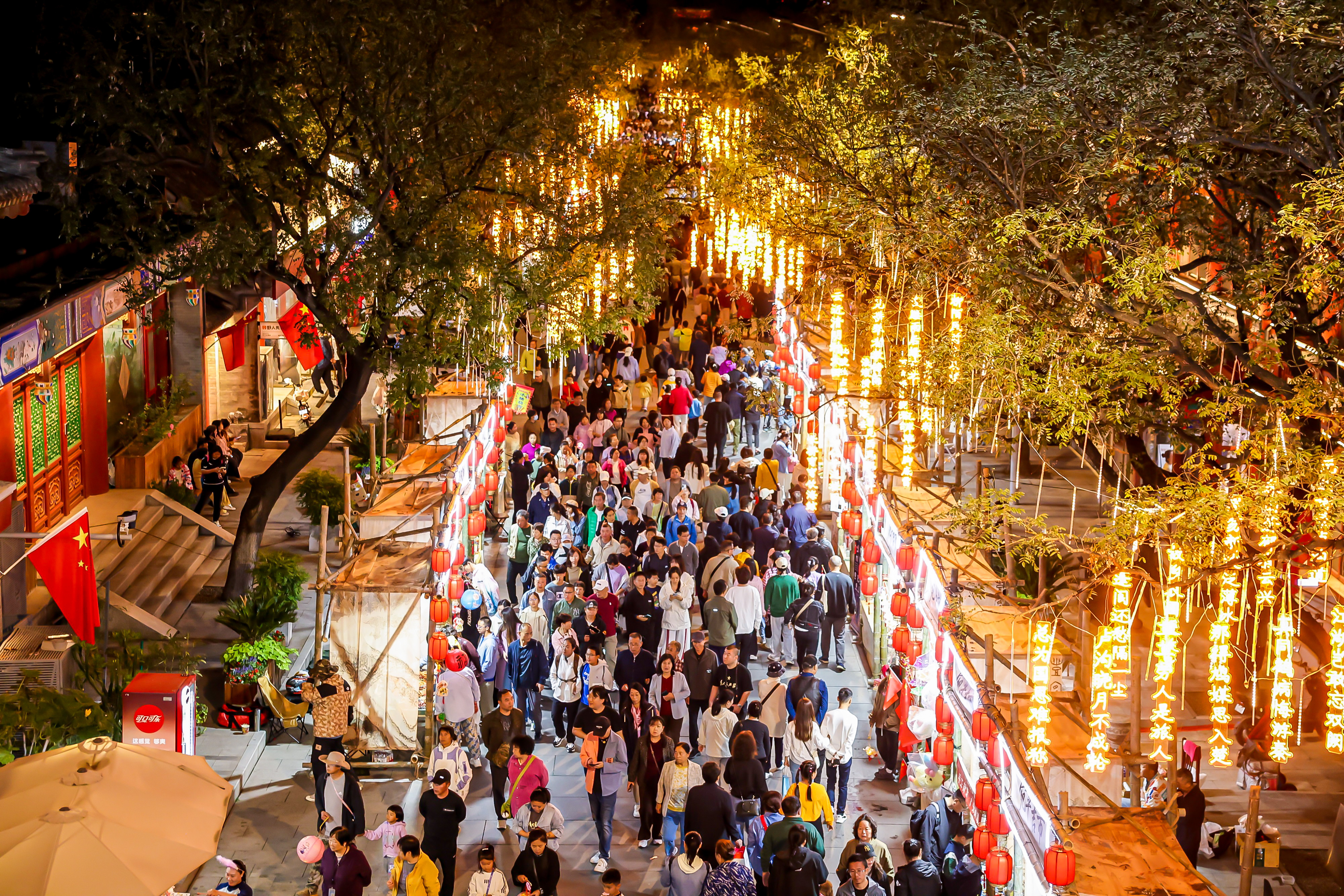 宛平城内,千余个诗词灯条流光溢彩,成为国庆中秋双节的“点睛之笔”。此外,北京首个以古城墙为背景的主题摄影展“城墙上的记忆——气壮山河·伟大丰碑”人气高涨,109张珍贵历史照片沿城墙一字排开,无声地勾勒出从卢沟桥事变到抗战胜利的壮阔史诗;“红色光影”露天影院每晚准时将《永不消逝的电波》《太行山上》等经典影片投影于城墙“天然幕布”上。动态的光影叙事与城墙之上静态的影像史料、庄严的国旗阵列相互补充,共同构建了一个可读、可看、可感的沉浸式文化体验。