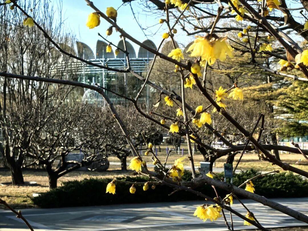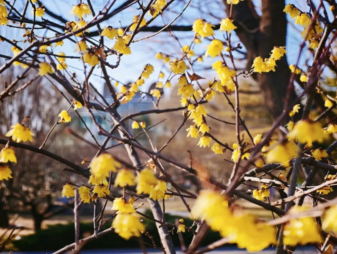 腊梅凝香,玉兰亭亭,迎春花缀满枝头