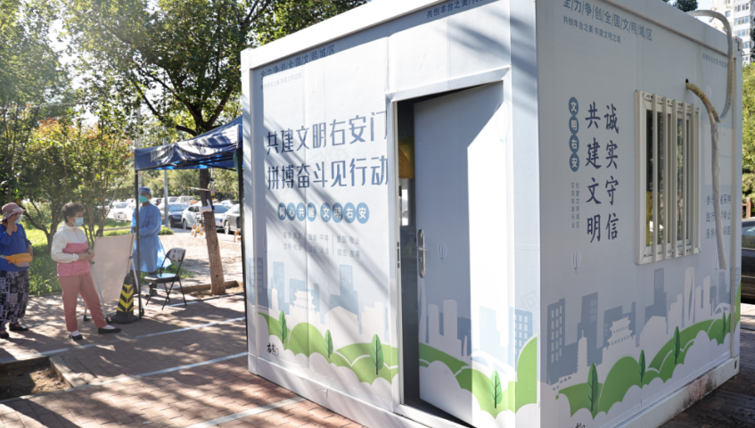 在辖区各个核酸检测点位,常态化核酸检测也融入了创城新风,白色整洁的方舱披上了新衣,社会主义核心价值观、文明公约等宣传标语面向每一位核酸检测的居民,大家自觉排队、保持间距,共做文明右安人。