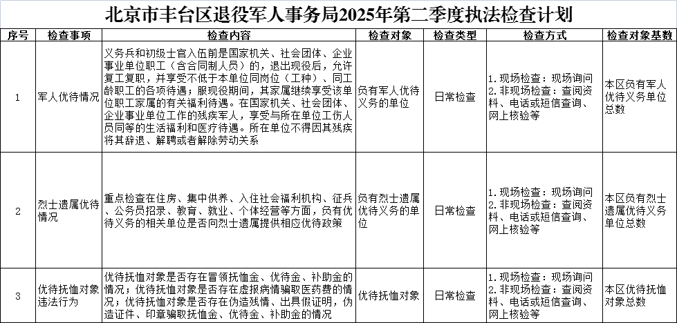 2025年第二季度执法检查计划-北京市丰台区人民政府网站