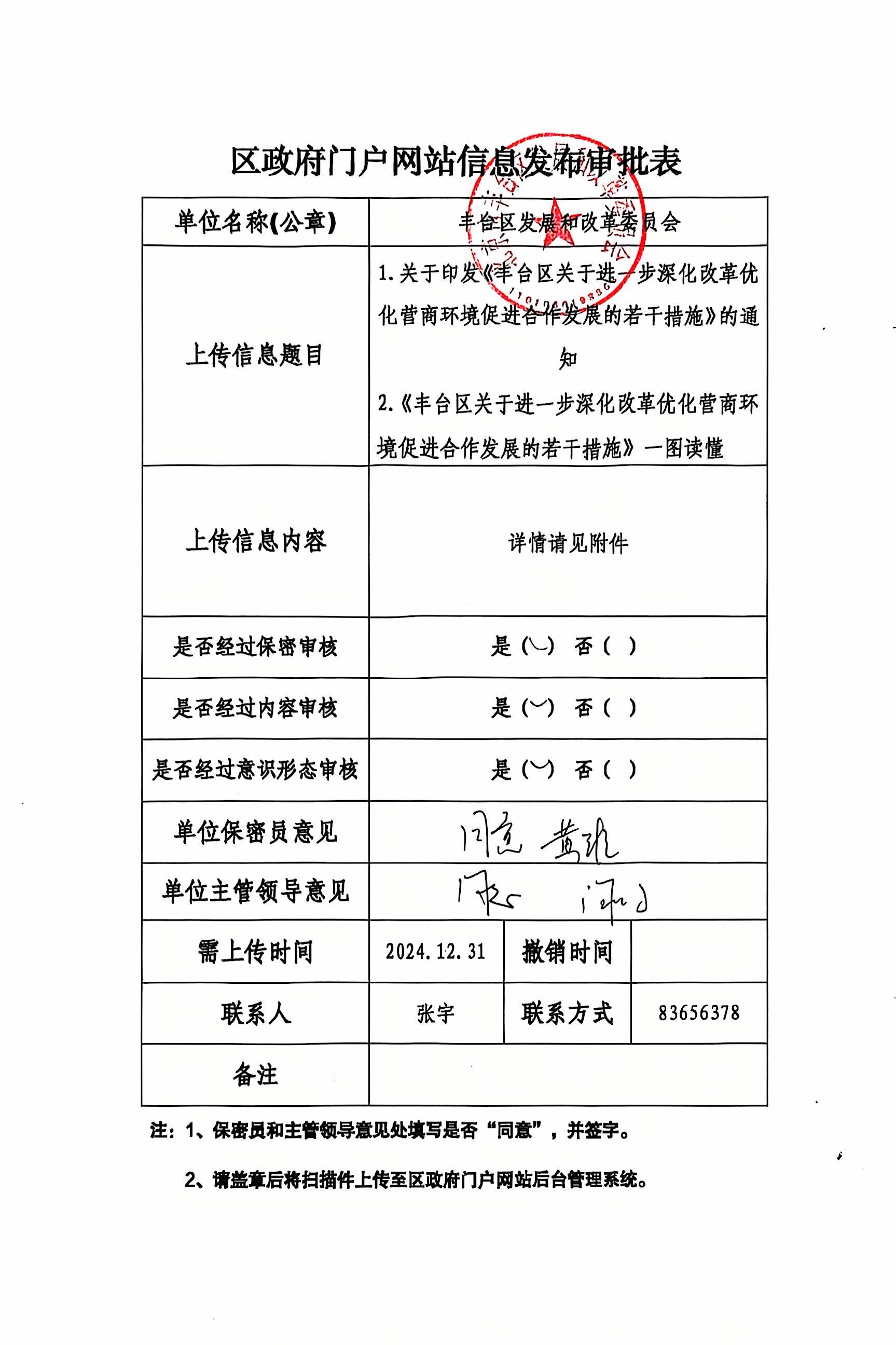 • 北京市丰台区发展和改革委员会等八部门关于印发《丰台区关于进一步深化改革优化营商环境促进合作发展的若干措施》的通知