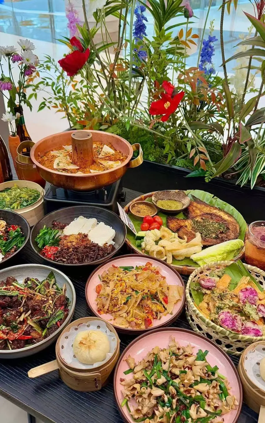 扫街榜口碑好店,主打田园融合菜,菜品精致、摆盘美观,主打菜鲜花饼、田园时蔬煲、果香排骨兼具颜值与口味,用餐环境被绿植鲜花环绕,氛围感拉满,适合闺蜜小聚。