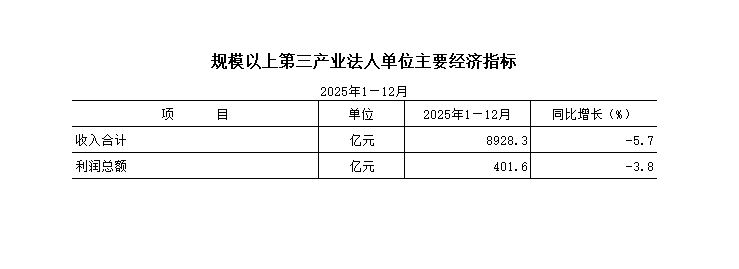 【月度数据】2025年1—12月规模以上第三产业法人单位主要经济指标